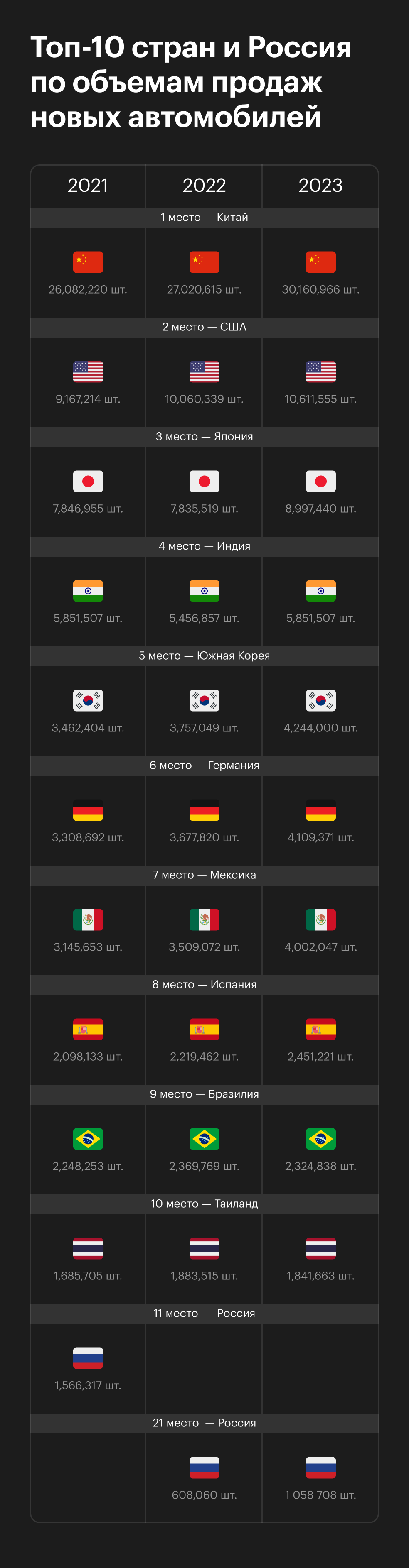 упадет всего на 10%, до 1,43 млн штук, но выход новых марок существенно замедлится. Ассоциация европейского бизнеса также озабочена наблюдаемыми тенденциями: вслед за ожидаемым декабрьским ростом на фоне очередного повышения утильсбора с января может последовать спад. Утилизационный сбор, увеличенный с 1 октября, будет снова проиндексирован с 1 января 2025 года: теперь ежегодно ставка становится выше на 15%.